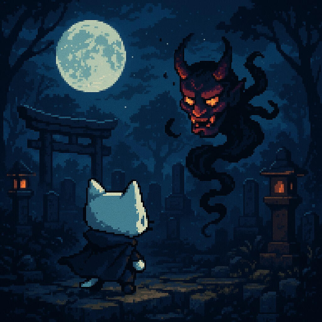 Play as the nimble cat warrior, Shiro, armed with a grappling rope and shurikens in a fast-paced action platformer!